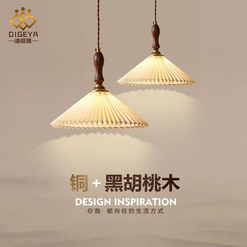 レトロ北欧百ひだ小シャンデリア胡桃木日本式バーレストラン民宿ネット赤シングル寝室ベッド照明