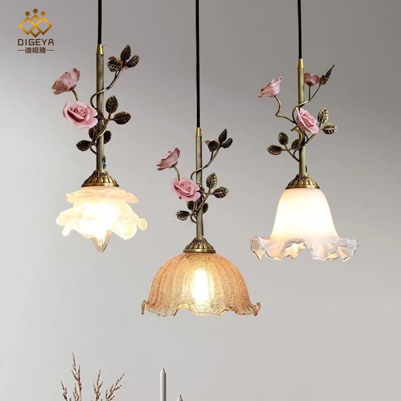 フランス式花びらガラスのシャンデリア日本式真鍮バー民宿アメリカ式レトロ寝室ベッドサイドランプ