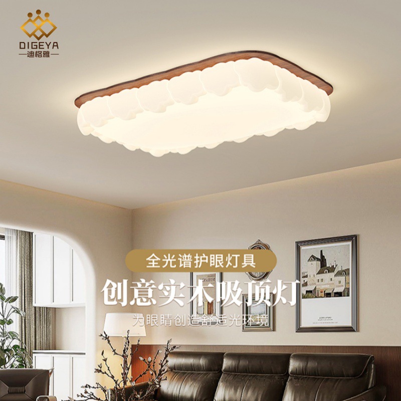 Digya 中世クリームスタイルのリビングルームシームレスシーリングランプクリエイティブ祥雲暖かい寝室の目の保護クルミランプ