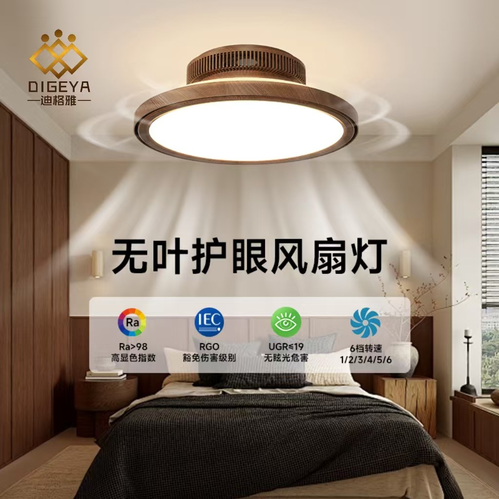 Digya アンティークスタイルの寝室とダイニングルームフルスペクトルブレードレスファンランプレトロウォールナット空気浄化一体型ランプ