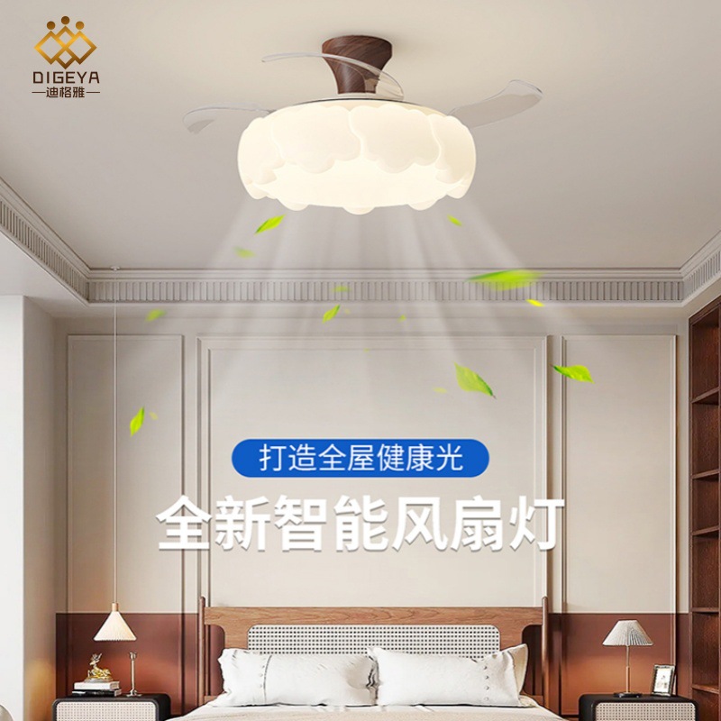 Digya 北欧ミニマリスト目に見えないファン寝室のシーリングランプクリエイティブ祥雲クリームスタイルマスターベッドルームスマートインバーティングランプ