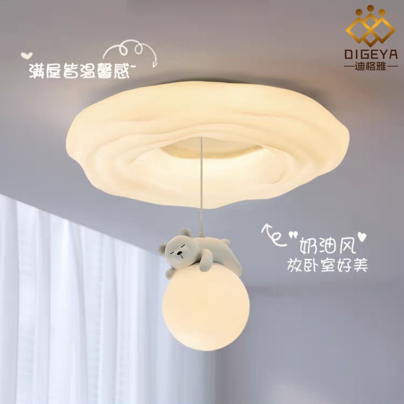 迪格雅全スペクトル保護眼かぼちゃ熊寝室灯シンプルクリーム風雲輪暖かい子供部屋天井灯