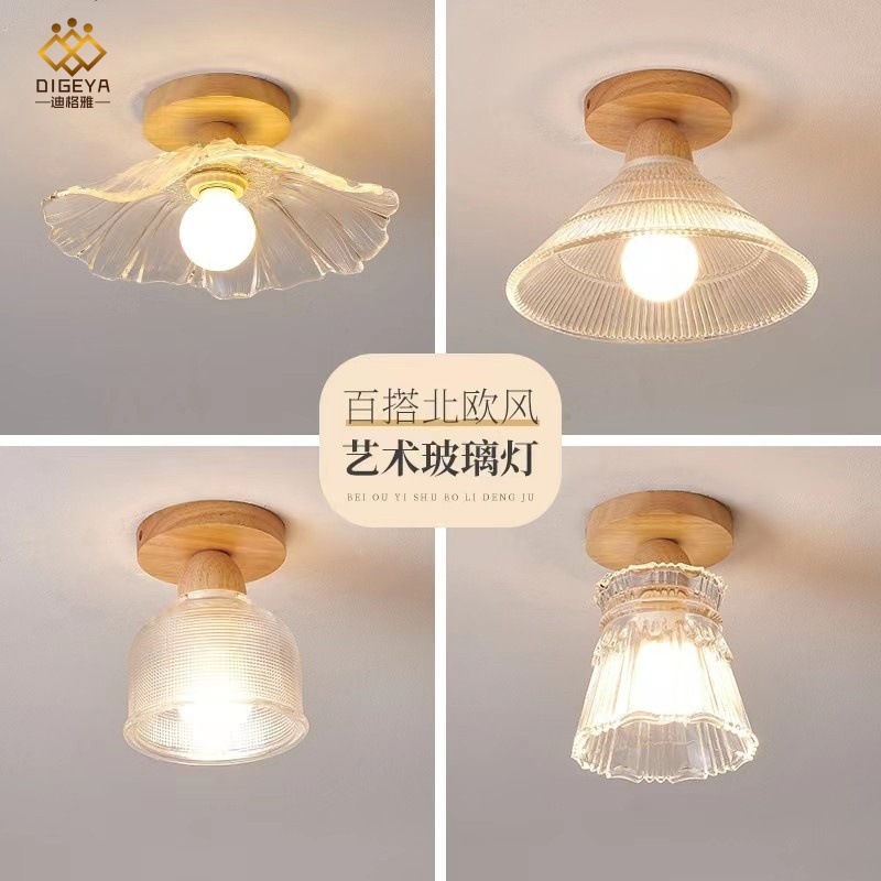 北欧現代シンプル廊下ベランダ実木天井灯創意led民宿玄関バーガラス天井灯