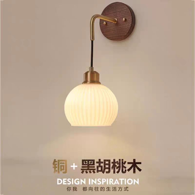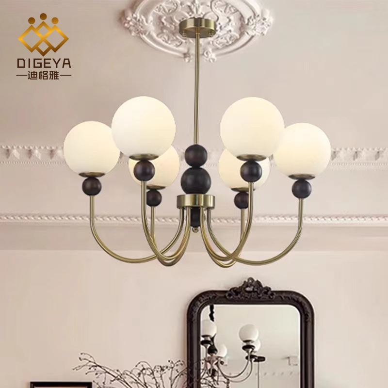 フレンチレトロ胡桃木クリームガラスランプバッグハウス現代シンプルリビングレストラン寝室アメリカ式中古ランプ