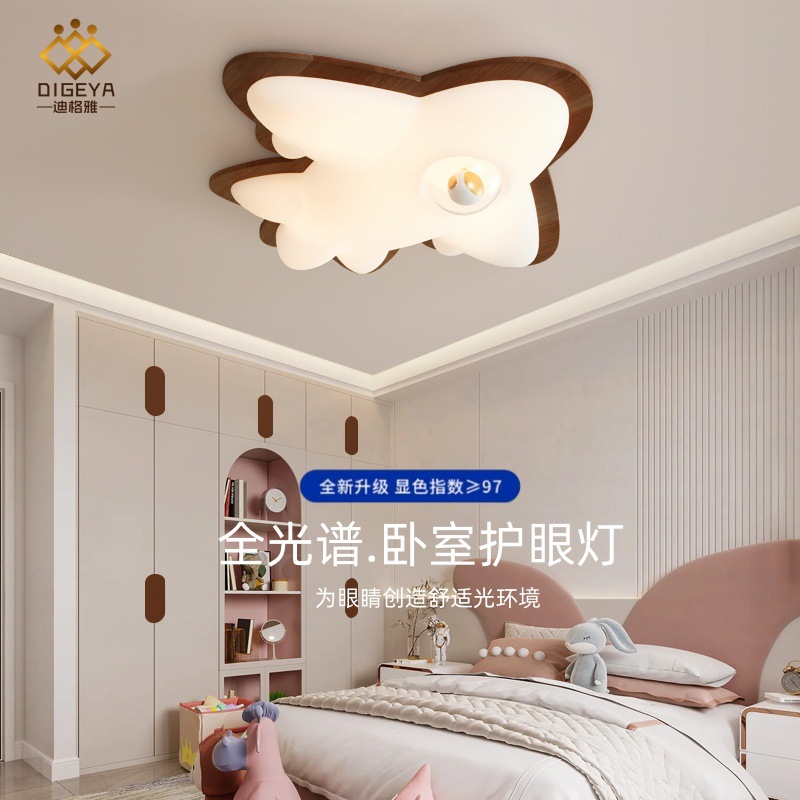 Digya 中世スタイルのシンプルで暖かい子供部屋の目の保護シーリングランプクリエイティブクリームスタイルの飛行機寝室ランプ