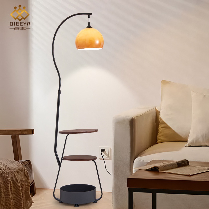 Digea フレンチミッドセンチュリースタイルのリビングルームソファサイドクリエイティブ収納ラックフロアランプ寝室のベッドサイドテーブル一体型ランプ