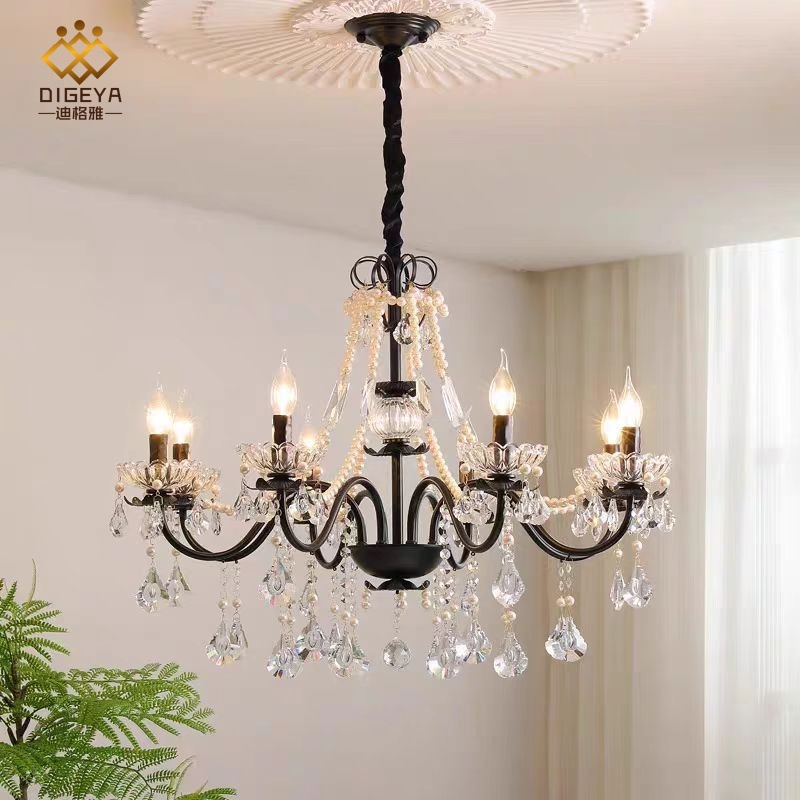 フランス真珠水晶レトロリビングリビングレストランペンダントヴィンテージ中古アメリカンヨーロッパ式別荘寝室シャンデリア