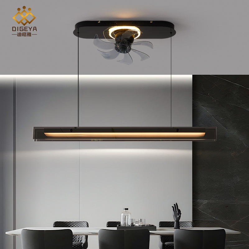 迪格雅意式の極めて簡単な高級レストランのファンのシャンデリアの一字の長いテーブルの扇風機の明かりの知能は目の照明器具を保護します。