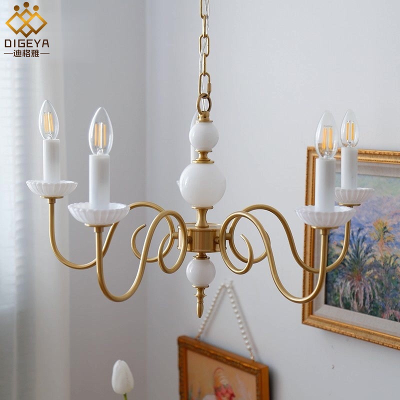 フランス式の軽くて豪華なクリーム風の黄銅の乳の白いガラスのろうそくのシャンデリアの復古的なアメリカの陶磁器のレストランの寝室は明かりを飾ります。