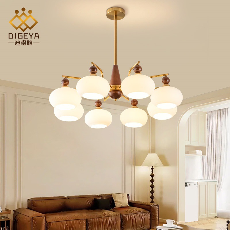 きわめてシンプルな客間シャンデリア現代シンプルな大気胡桃木魔豆北欧家庭用創意レストラン実木寝室ランプ