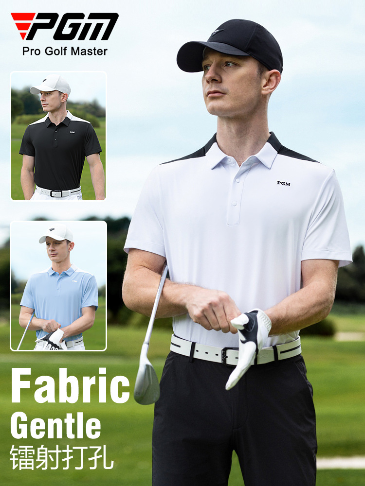 PGM 新しいゴルフウェアメンズ半袖サマースポーツ Tシャツメンズ通気性速乾性吸汗性ジッパーラペル