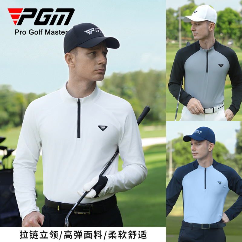 PGM ゴルフ メンズ 長袖 Tシャツ スタンドカラー ジッパー 防風 メンズ 秋冬 ソフト スポーツ ストレッチ トップス
