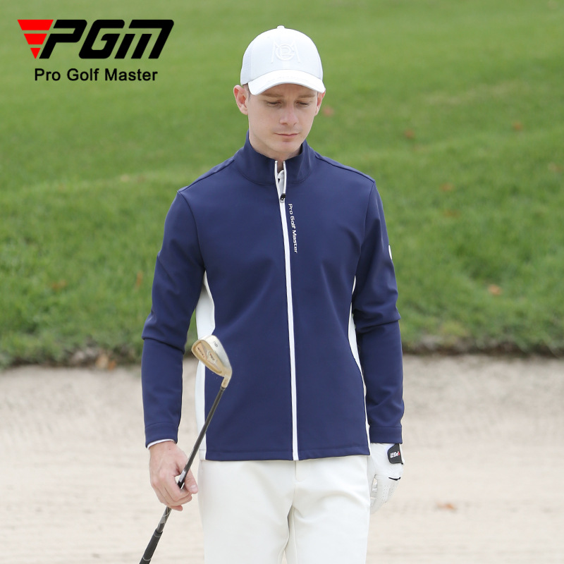 PGM ゴルフ メンズ 秋冬 防風 暖かい ジッパー スタンドカラー ジャケット ベルベット裏地服 長袖 Tシャツ