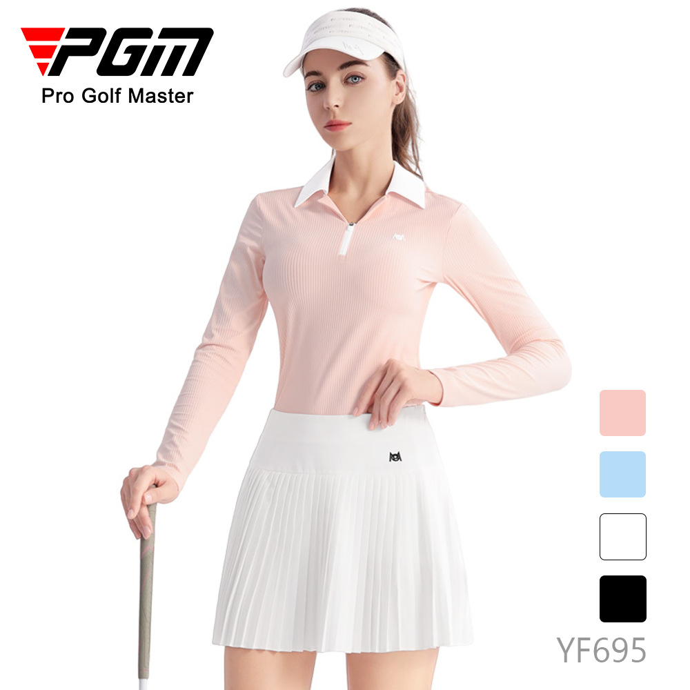 PGM ゴルフウェア レディース ボトリングシャツ ラペル レディース スカート トップス プリーツスカート スポーツスーツ 長袖 Tシャツ