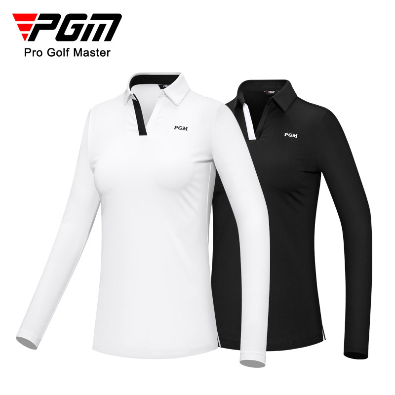 PGM 新しいゴルフレディース長袖 T シャツ秋と冬の新しいスポーツ高弾性生地スリット裾 V ネックデザイン