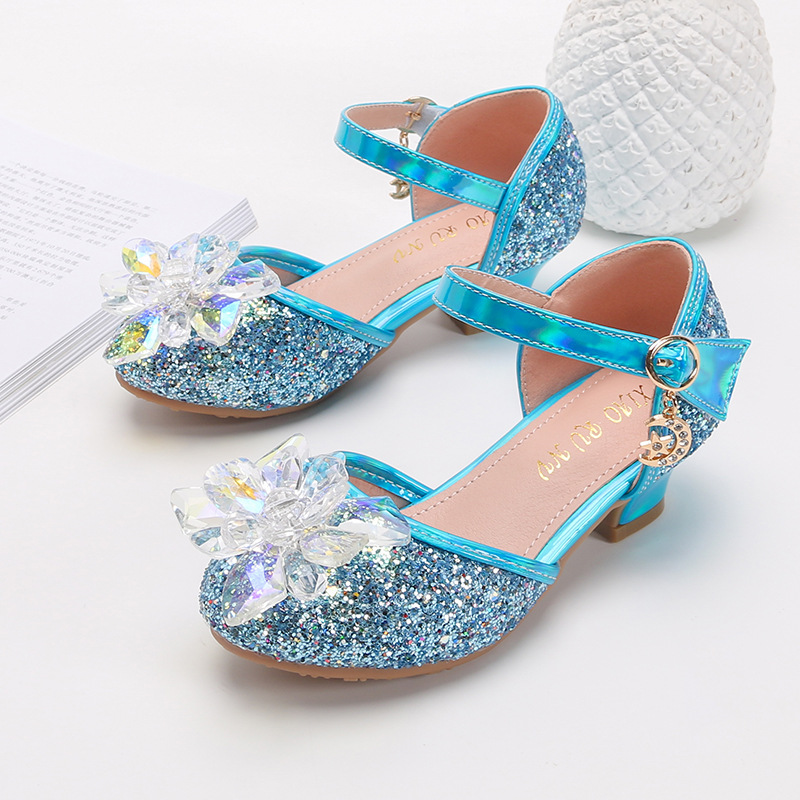 2023春の新作アナと雪の奇縁のスパンコールの艾莎の女の子の王女の靴の小さい女の子は水晶のハイヒールの子供の靴を演出します。
