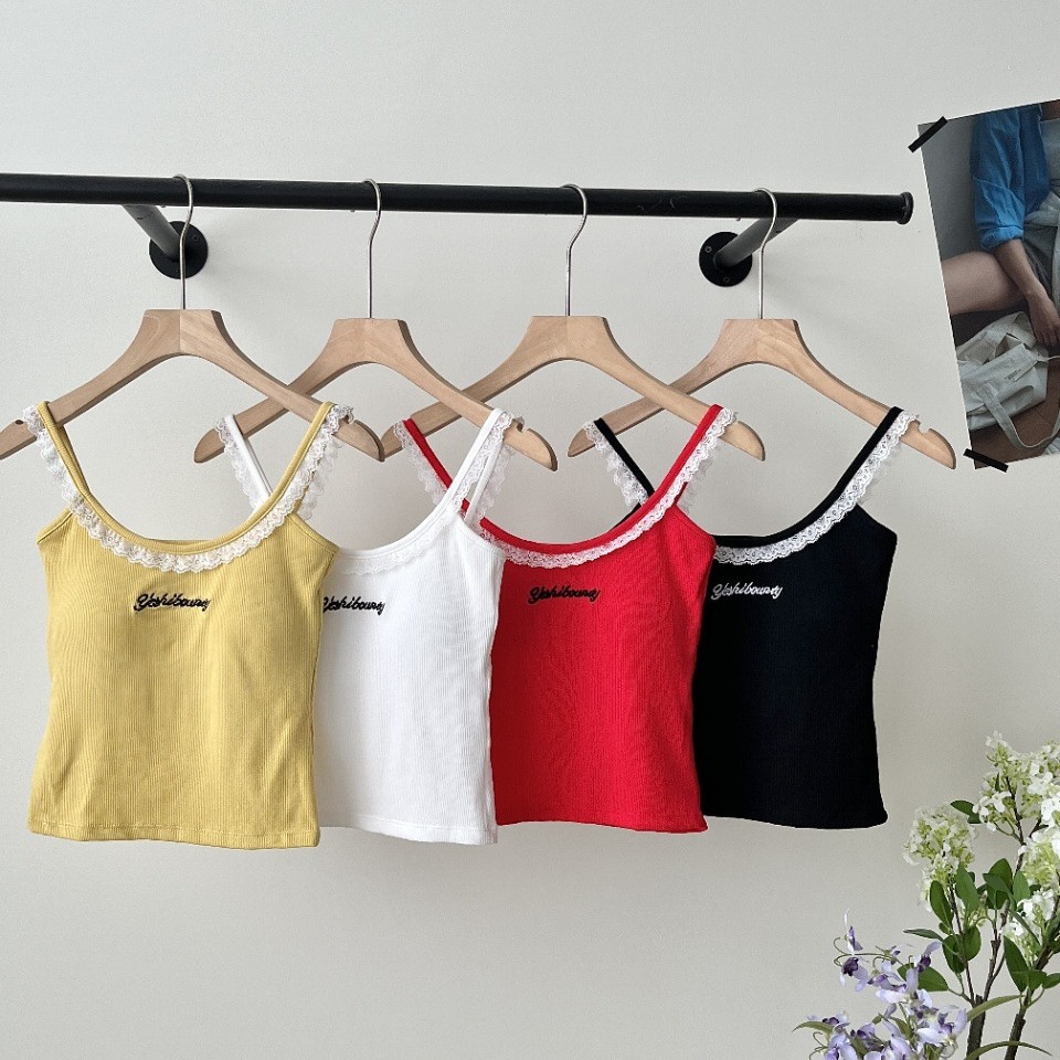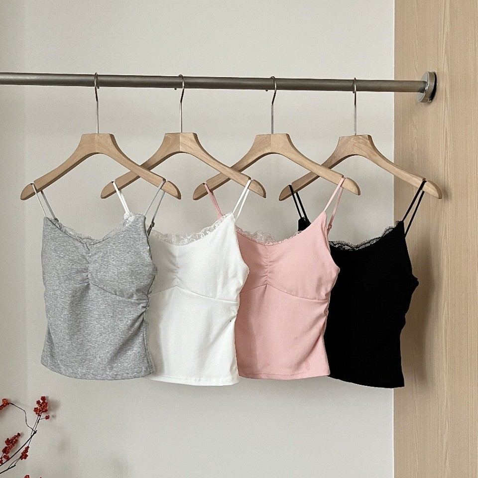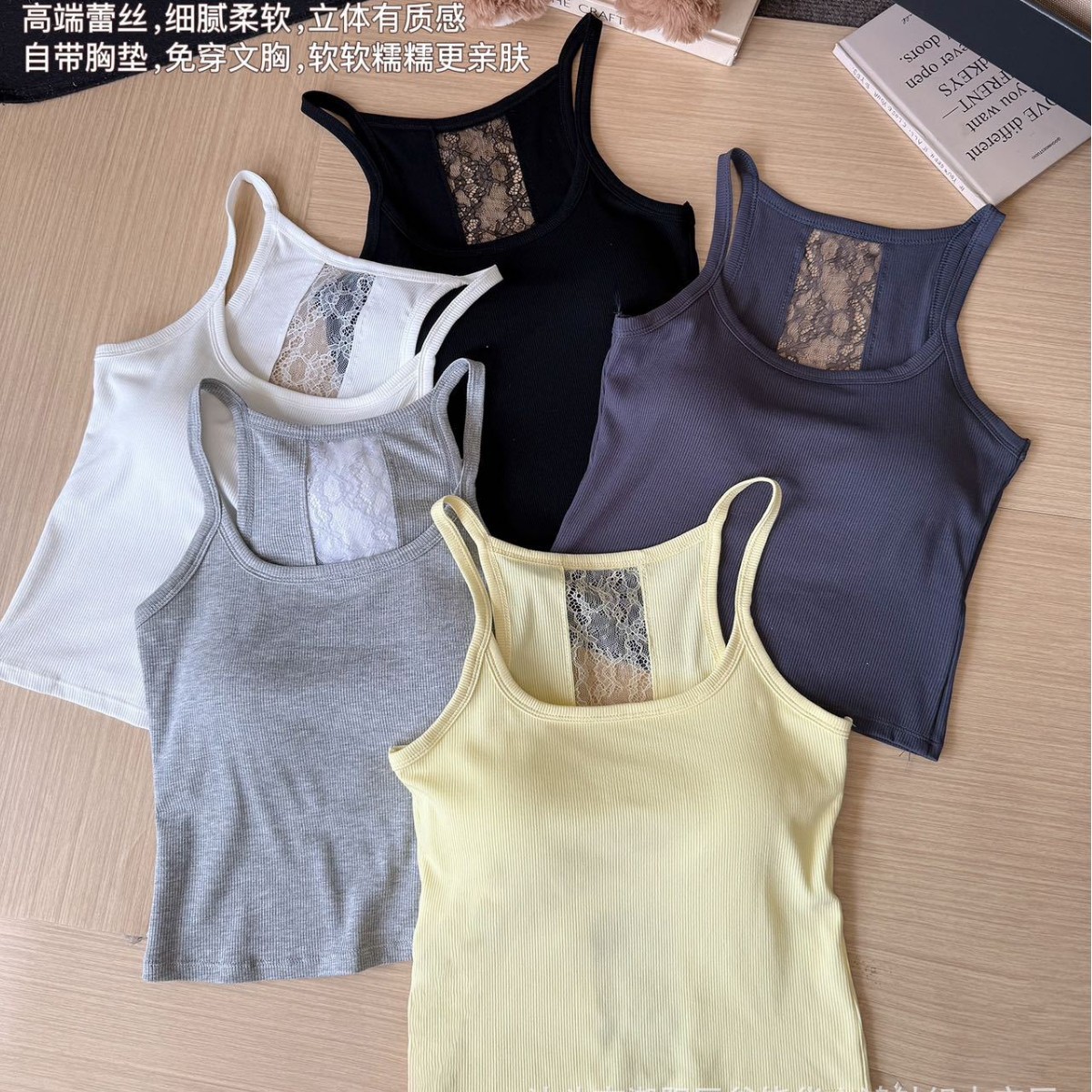2025夏スイートスタイルレース耳キャミソール胸パッド付きインナーとアウターウェアスリムバックトップ