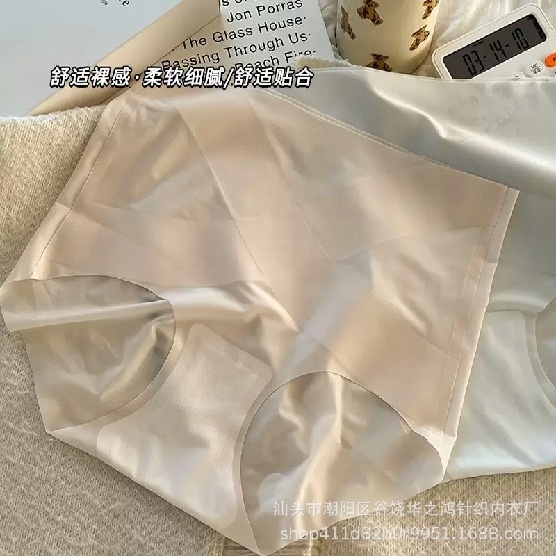 新しい対外貿易ソリッドカラーアイスシルク下着女性の純綿クロッチ通気性ミッドウエストシームレス露出防止安全パンツボクサーブリーフ