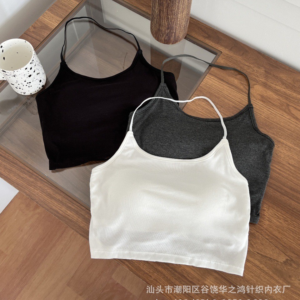 夏の新作ホットガール甘くてクールなクロスバックレスホルターネックサスペンダーブラック美しいバックデザインベスト胸パッド付きトップ