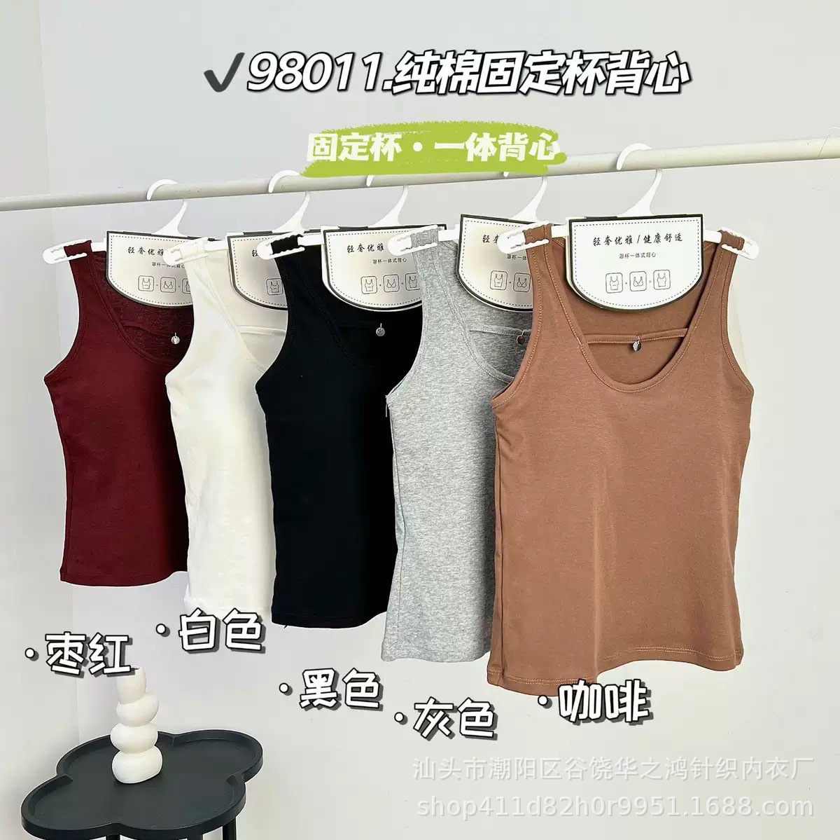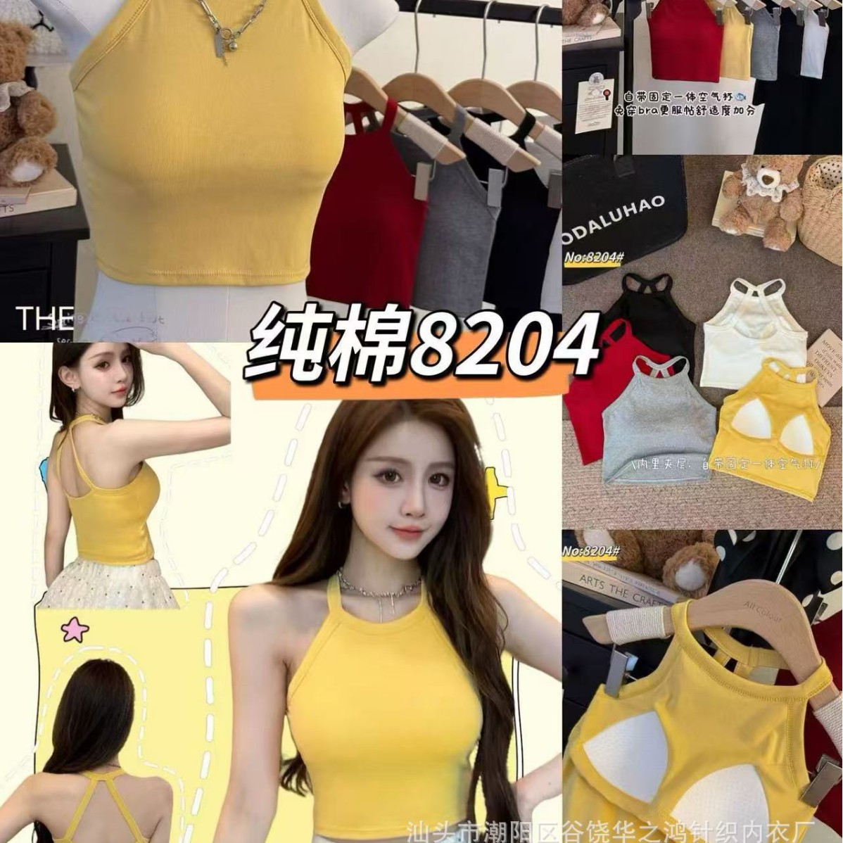 新しいホットガールラウンドネック純綿ワイドショルダーベスト胸をカバー通気性ラテックス固定カップ美しい背中底下着女性用