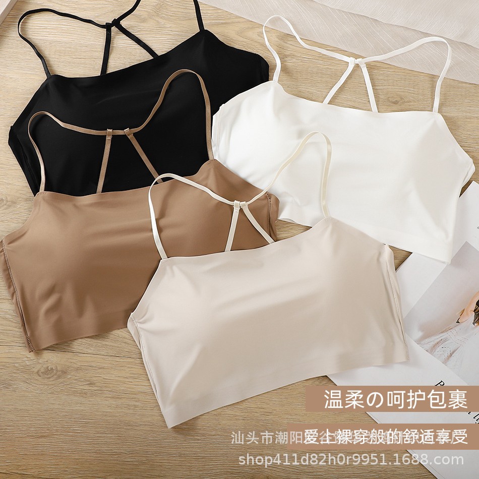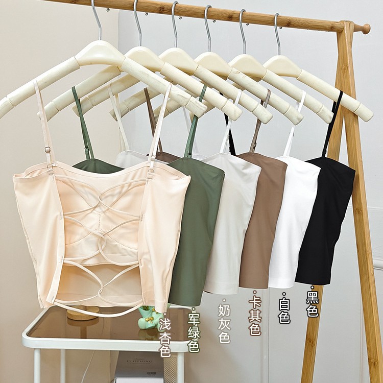 2024年夏新作アイスシルクインナーサスペンダー、美しい背中、胸パッド付き、シームレスアイスシルククロス中空胸ラップ