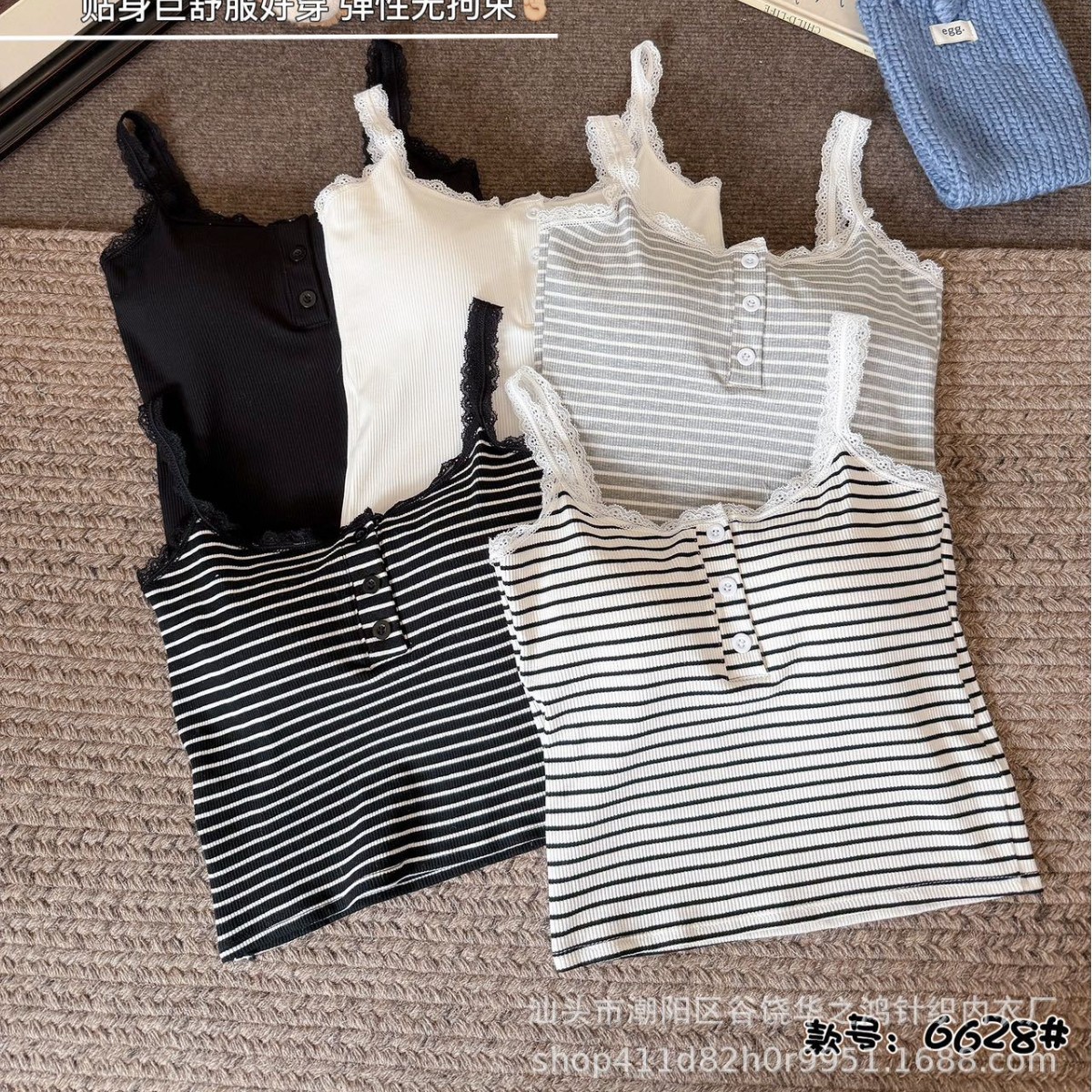 春夏の新作ホットガールビューティーバックレースボタンキャミソール女性用胸パッド付き、インナーとアウター用の多用途ベスト