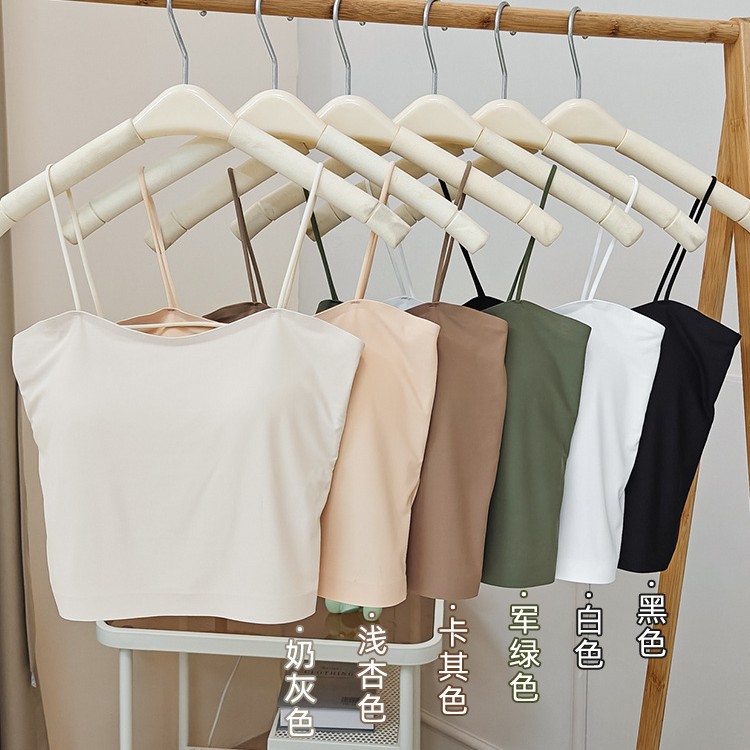 新しい夏の万能おへそ出し高弾性キャミソール、固定胸パッド付き、アイスシルクインナー、胸を包むベースレイヤー
