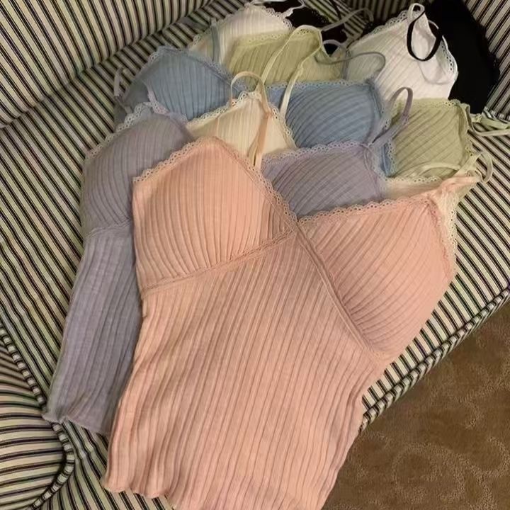 新しいホワイトレースBM多用途キャミソールレディースフレンチスイートスパイシーアンダーレイヤリングトップス胸パッド付きアウターウェア