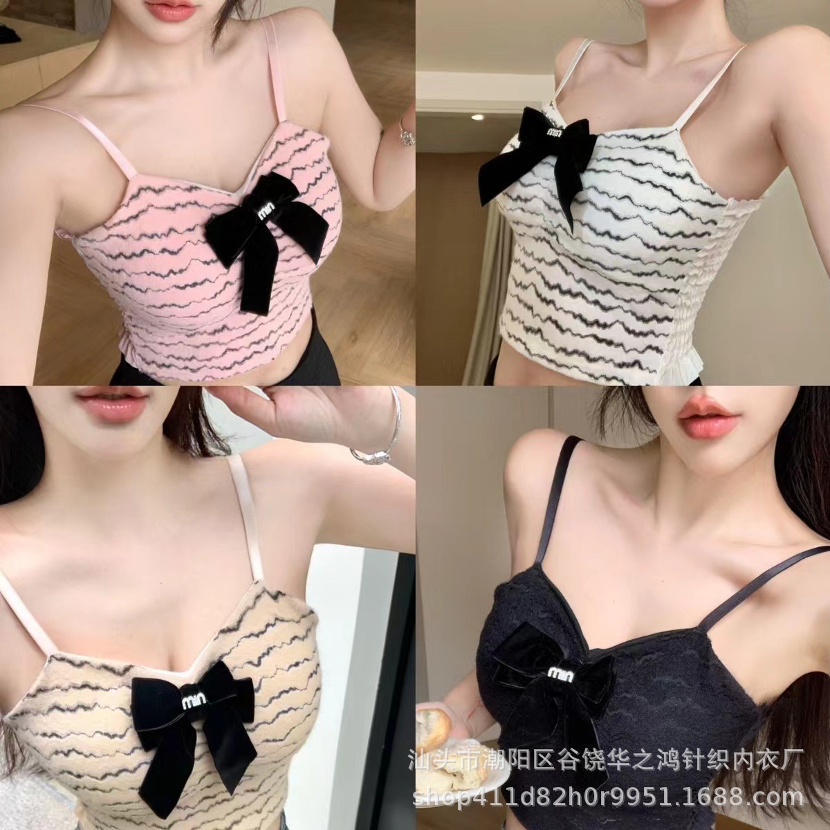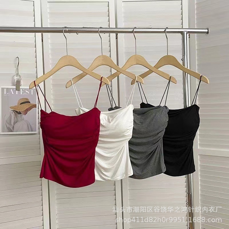 夏用縫製レーヨンプリーツ美背中ホットガールスリムフィットサスペンダーベスト、胸パッド付き、アウターウェアボトムストップ