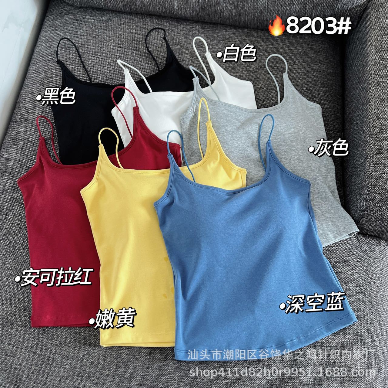 新しい純綿ファッショナブルで多用途なラテックスカップスリムフィットサスペンダーソリッドカラーベスト、固定カップホットガールボトリングトップ付き