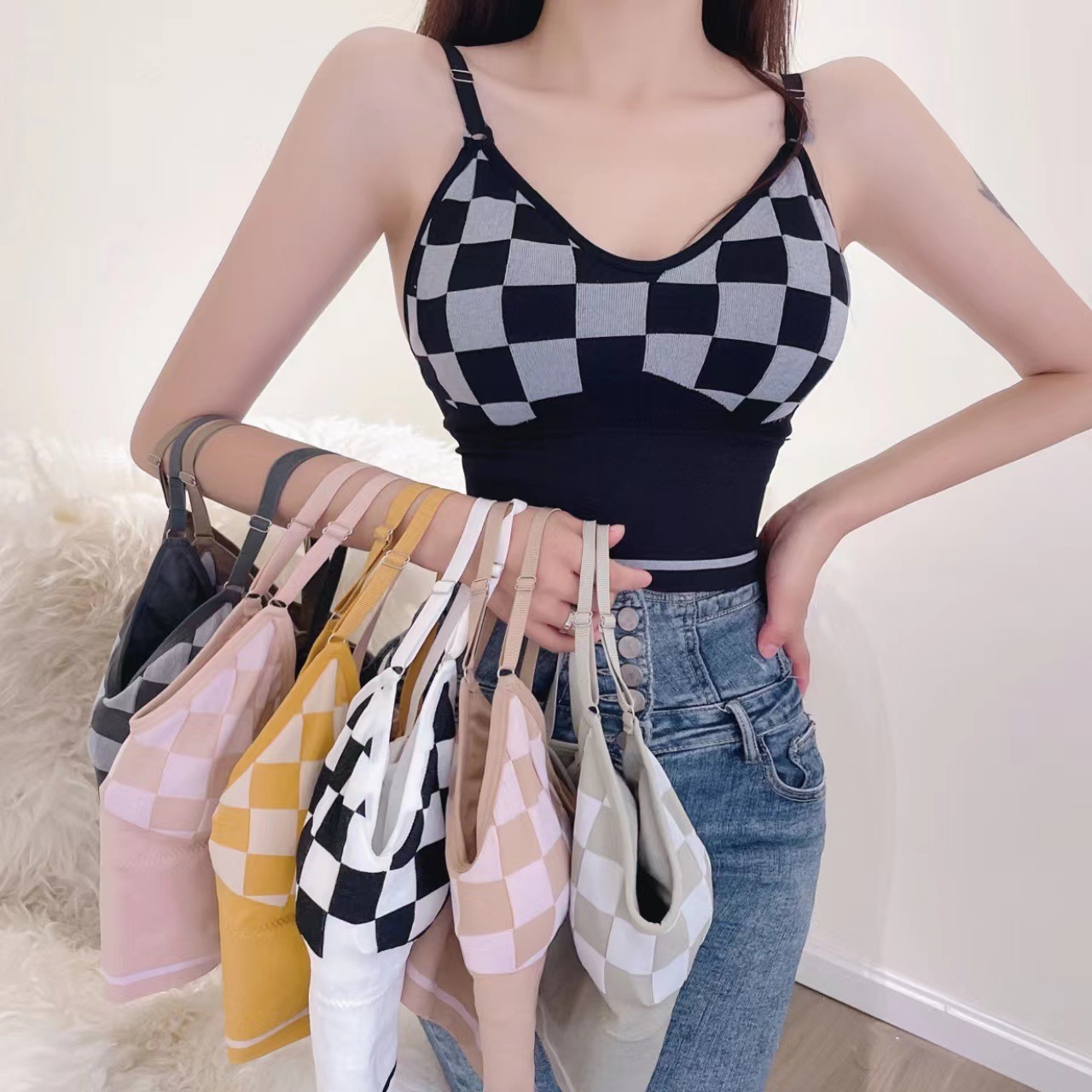 棋盤格は胸の小さいサスペンダーのベストの女性の中で2022夏の新型の下着のデザイン感を巻いて、みんなは上着を着ます。