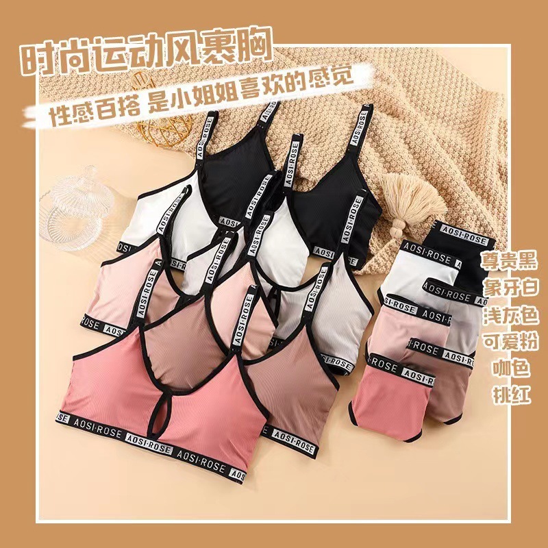 韓国版スレッドストラップベストセクシーアルファベットベストレディーススチールリングなし胸パッド付き三角パンツセットレディース