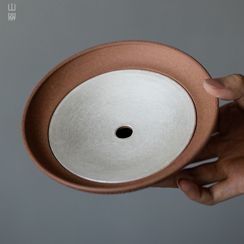山鼎老岩泥手描銀縦紋壺承創意二層陶磁器乾泡台壺承茶承壺トレー