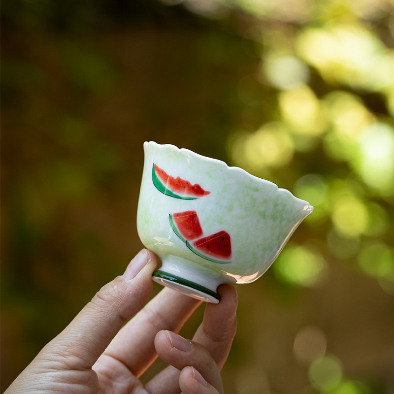 山鼎の手描きのスイカの花口の主人の杯はお茶の杯を飲みます。