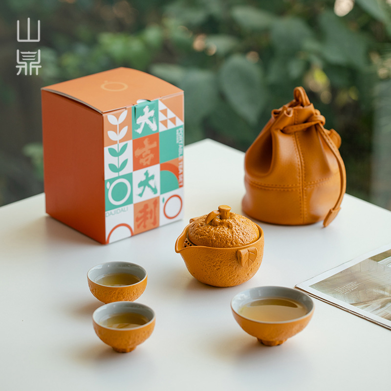 山鼎一壺二杯旅行茶器家庭用陶磁器屋外携帯キャンプ