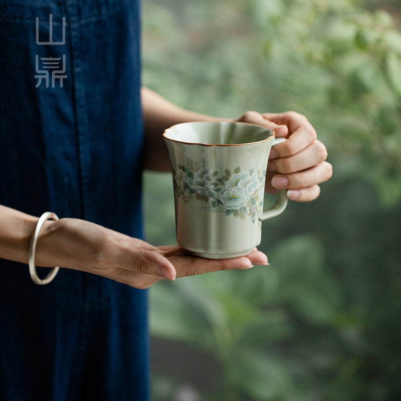 山鼎草木灰手書き聚香杯家庭用レトロ陶磁シングルカップ