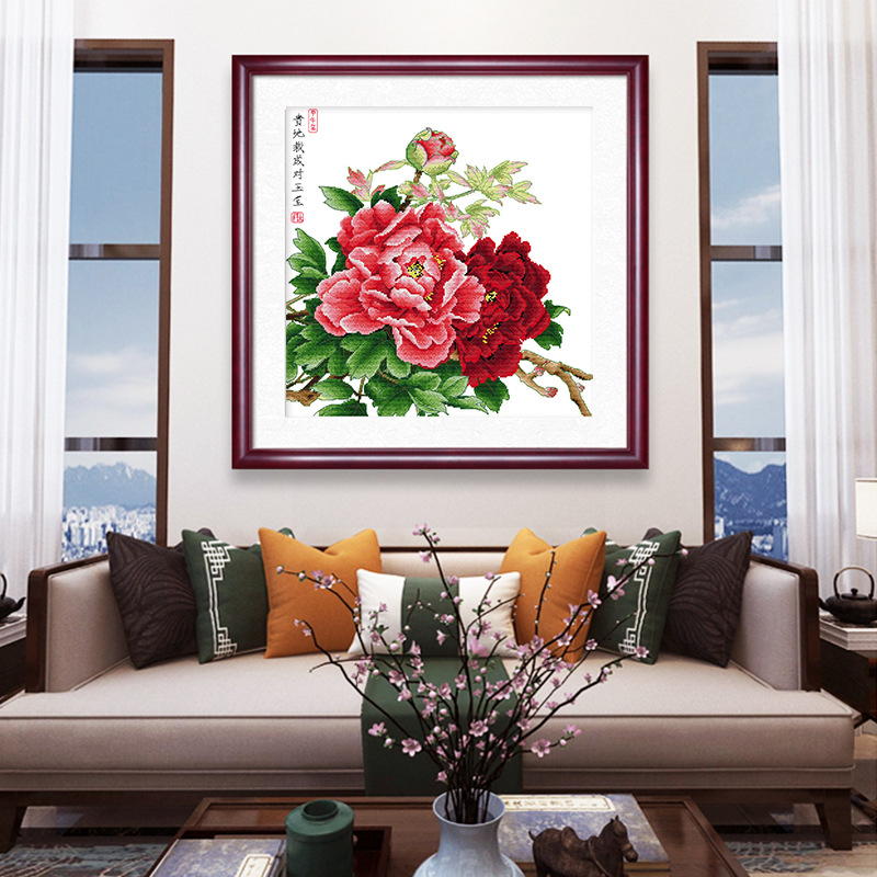 Nkf新型十字刺繍植物花卉牡丹diy刺繍材料包客間装飾画メーカー代理