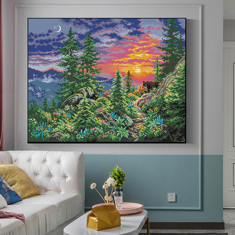 歓楽99新型十字刺繍風景シリーズ落日霞光刺繍材料包客間装飾画卸売り代発