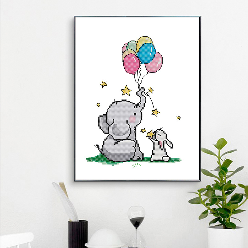 楽しい99十字刺繍象さんとウサギさんの新しい寝室の子供風掛け絵メーカーの卸売り