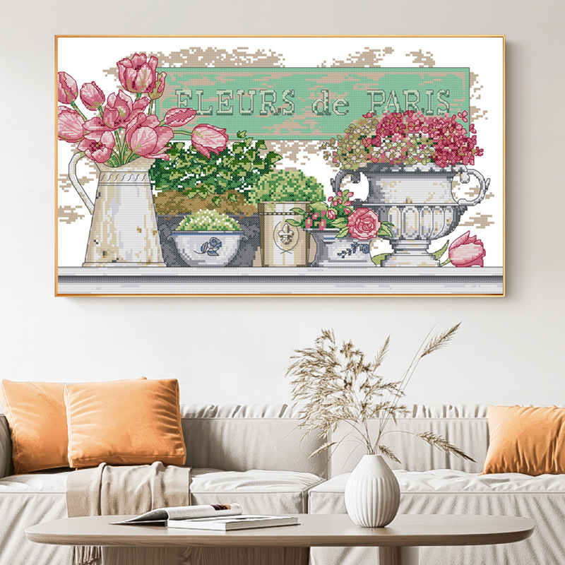 Hff十字刺繍新植物花卉パリの花diy刺繍材料客間装飾メーカー卸売り代発