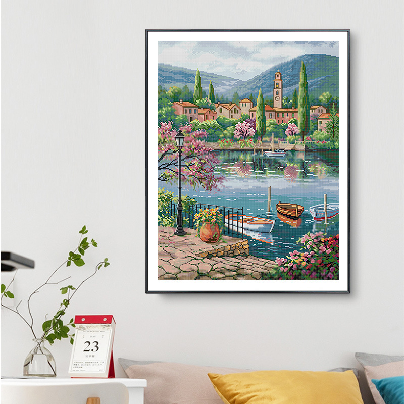 国境を越えた新製品十字刺繍風景シリーズ湖光山色刺繍材料包寝室装飾メーカー卸売り代発