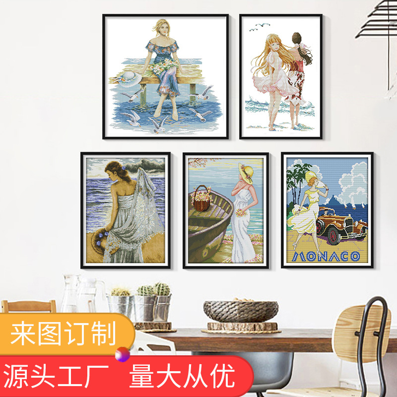 Nkf新型十字刺繍人物シリーズ海辺美女倩影diy刺繍材料寝室メーカー卸売り