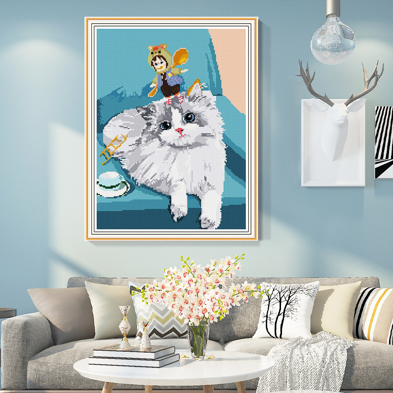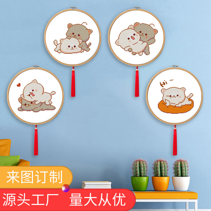 ジョイサンデー新型クロスステッチ枠付き小形動物かわいい猫diy刺繍材料寝室メーカー卸売り