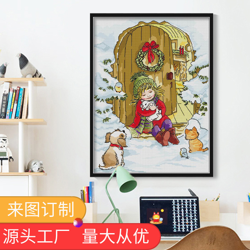 国境を越えた新製品の十字刺繍アニメクリスマス夜の女の子たちの刺繍材料は刺繍寝室メーカーから卸売りされた