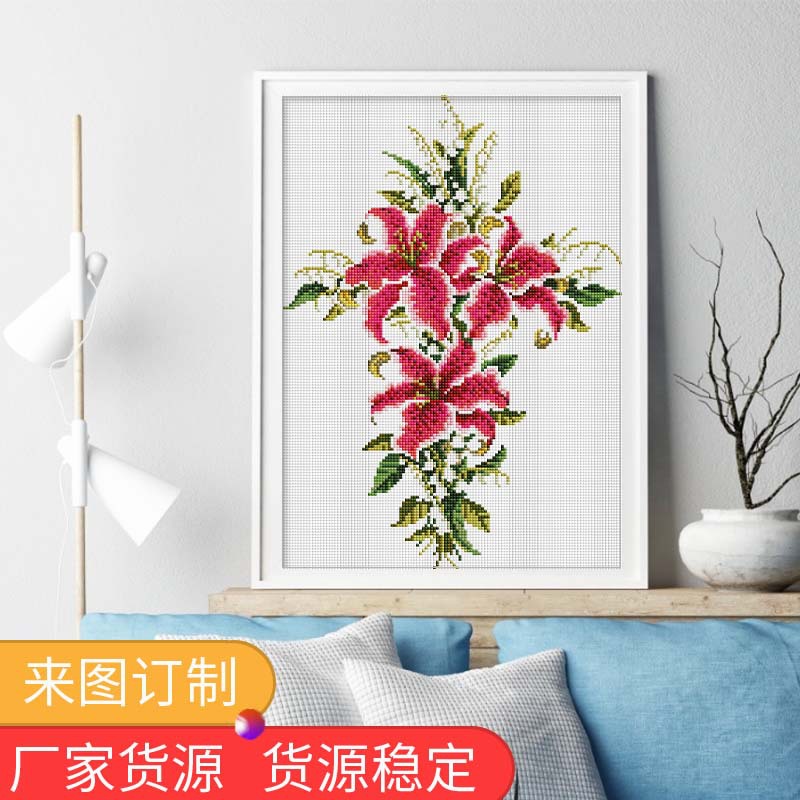 外国貿易の新型ダイヤモンド画の静物シリーズのチューリップのユリのクロスは材料を貼って客間を包んで卸売りを飾ります。