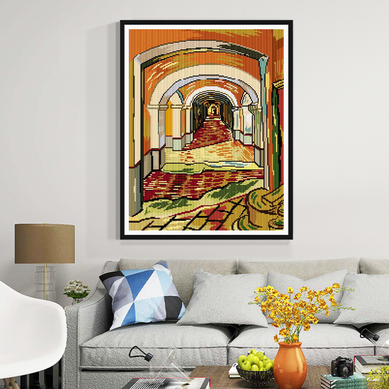 Nkf新型ダイヤモンド画風景シリーズゴッホ病院廊下diy材料バッグ卸売り客間寝室装飾画