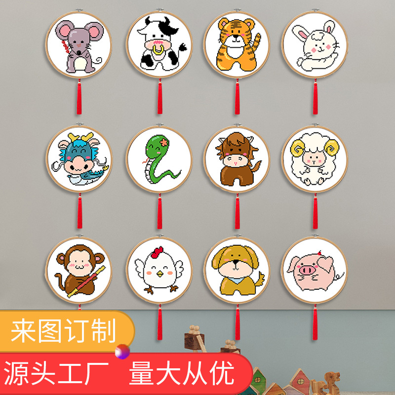 Hff新品十字刺繍動物十二生肖小学生新米diy刺繍材料バッグ寝室装飾帯枠
