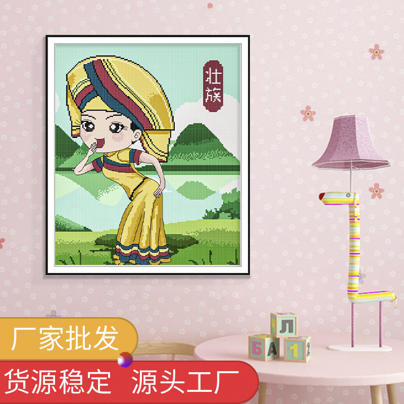 針愛99新型十字刺繍人物シリーズ壮族妹刺繍材料包寝室装飾画メーカー卸売り