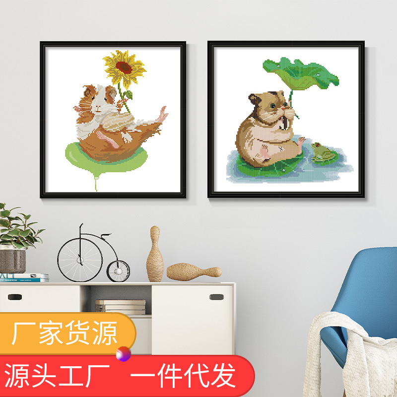 クロスボーダー新商品クロスステッチ二人の親友オランダ豚とひまわり刺繍材料バッグ寝室メーカー卸売り