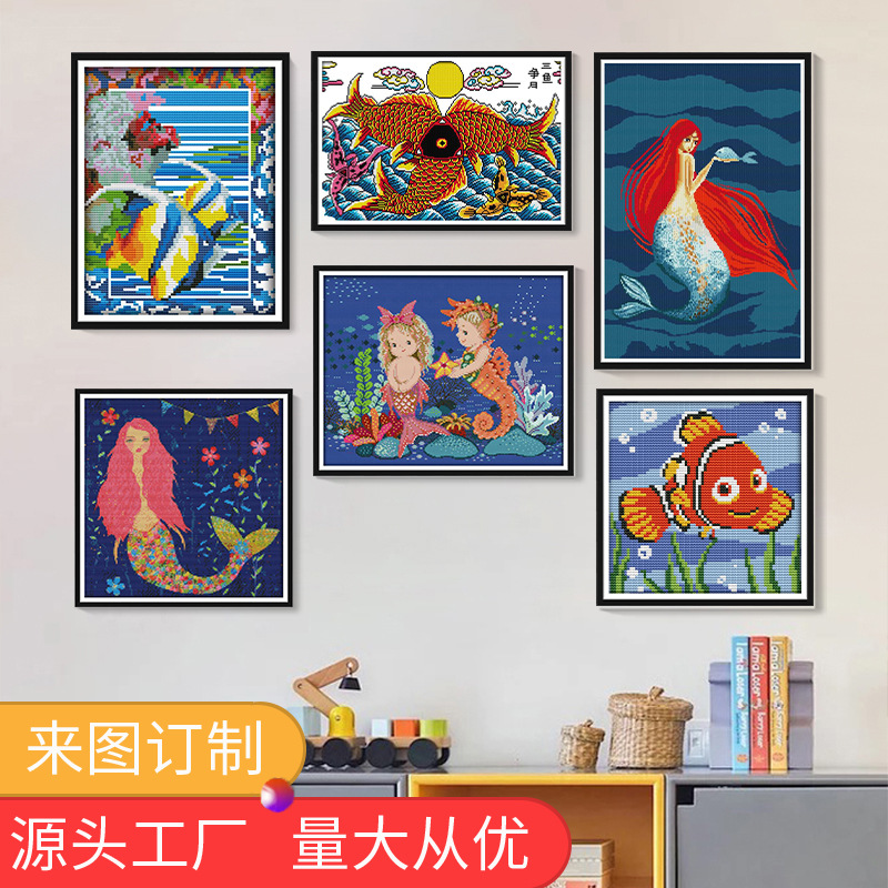 2021新型nkf十字刺繍アニメ人魚と海馬diy刺繍材料寝室メーカー卸売り